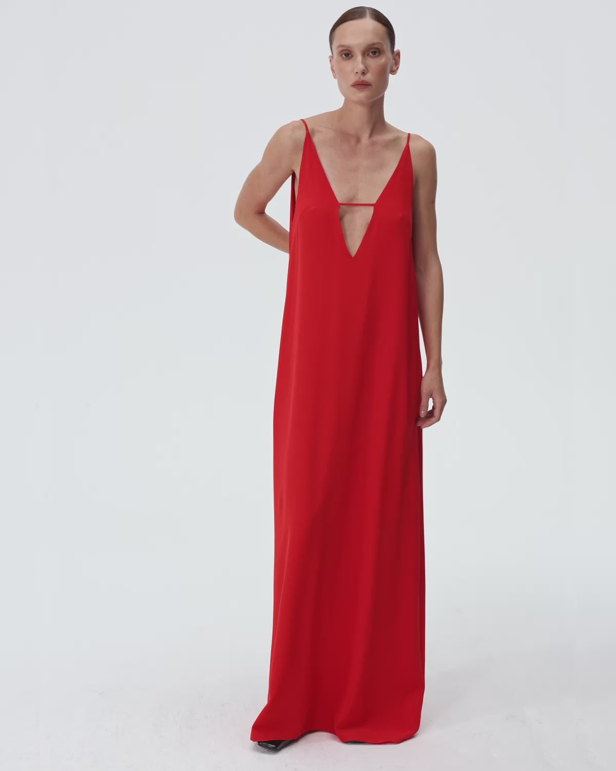 Uncover the Lea Dress — a ethereal veil of purity, draping like mist over morning fields. Fashioned from pure silk, its cape-like back adds a touch of dramatic whimsy and unbound freedom. Available in vivid Red and mysterious Black.