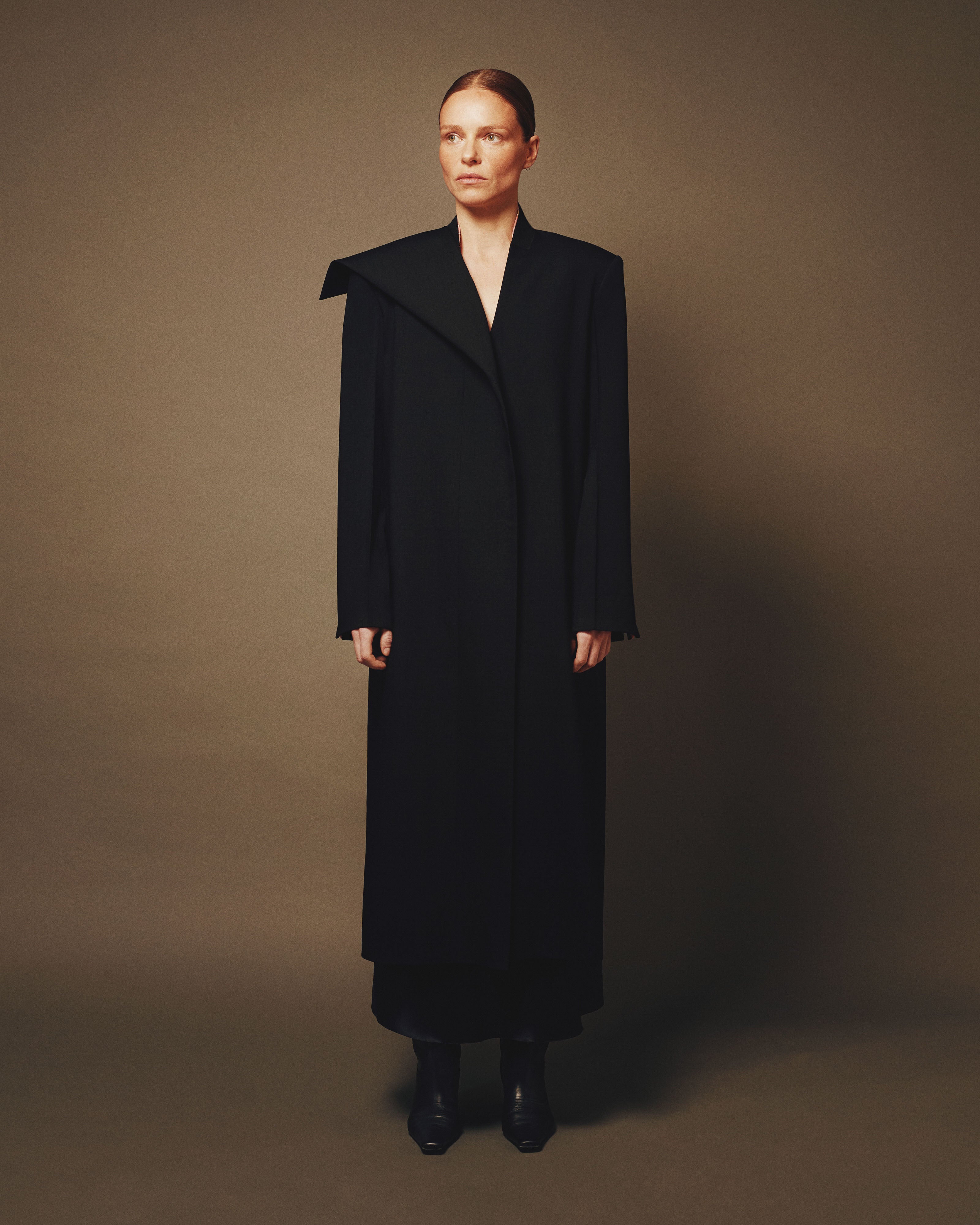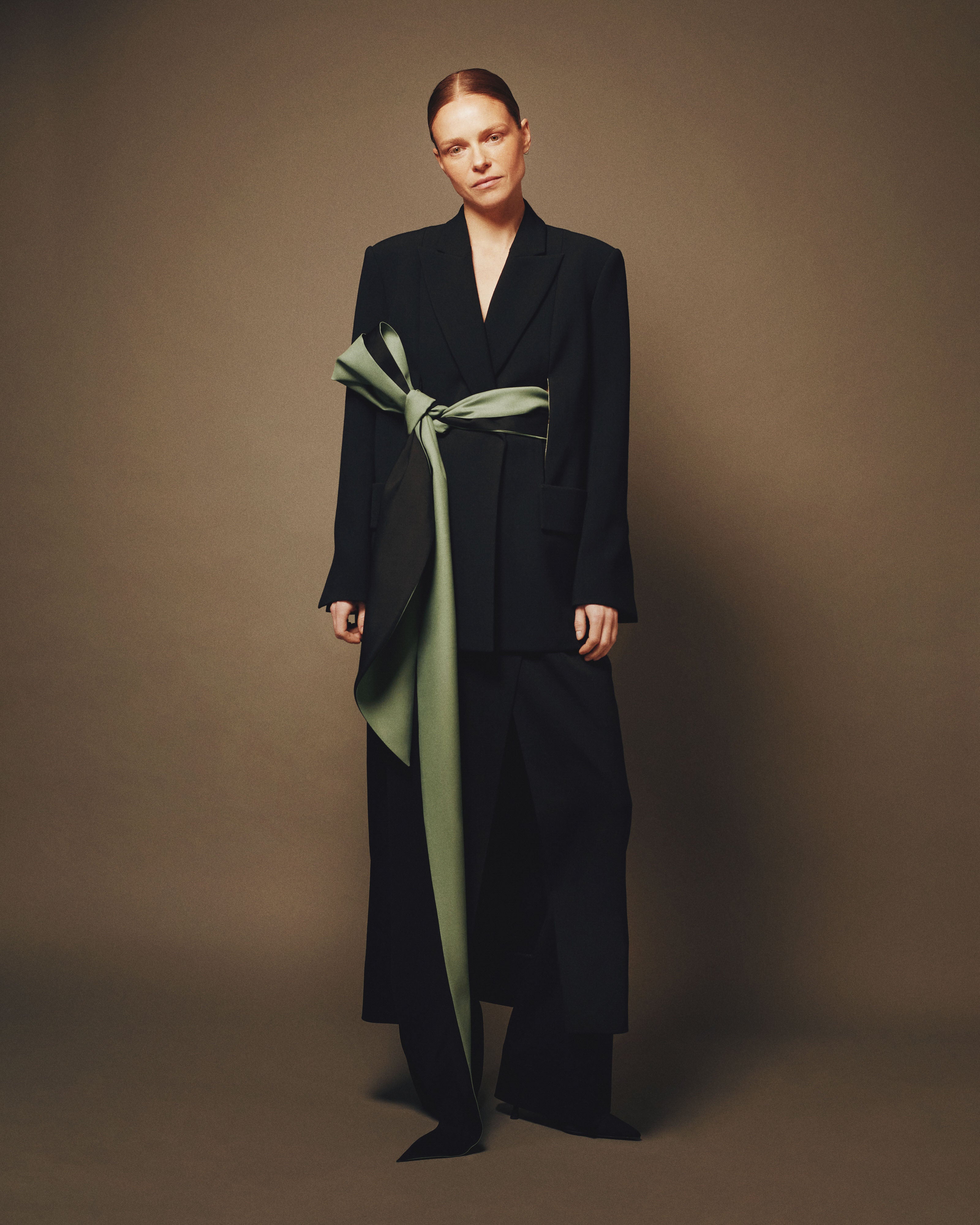The collection features perfectly tailored suits, long coats, wide trousers, and seductive dresses. The silhouettes and forms emphasize the beauty of the female body without restricting movement. Neutral shades such as black, gray, beige, and brown align with the classic mood of the collection. Vintage elements incorporated as decor reflect the brand's commitment to sustainability and the harmonious blend of modernity and fashion eras from the past.
